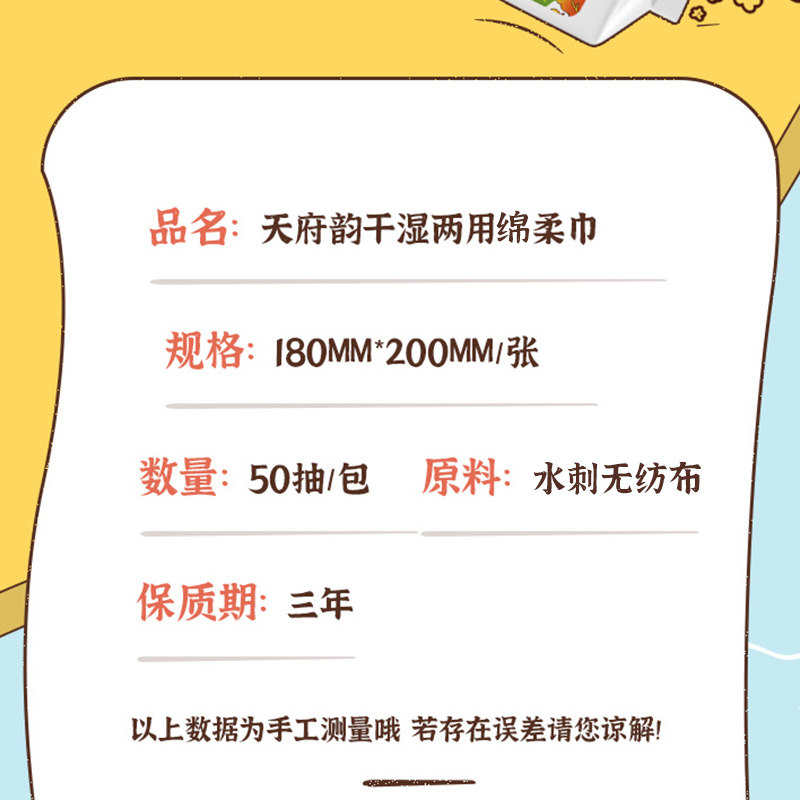 一次性50抽洗脸巾绵柔巾干湿两用巾加厚卸妆巾亲肤天府实惠装便携