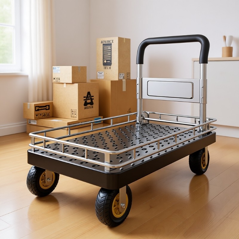 小推车平板车拉车不锈钢折叠货车护栏带围栏静音手推车货车拉