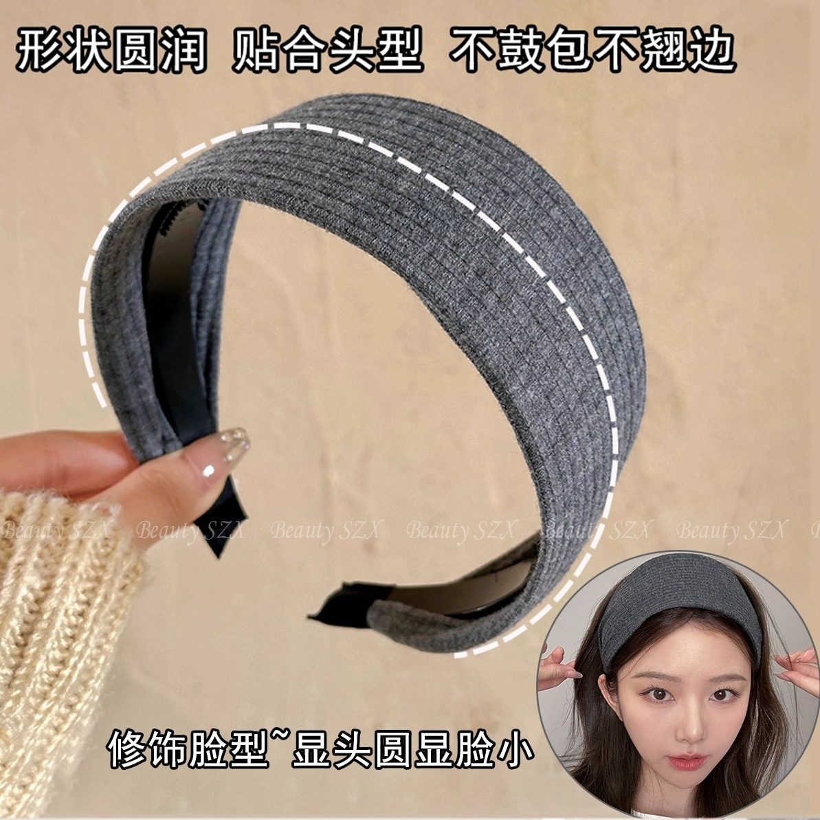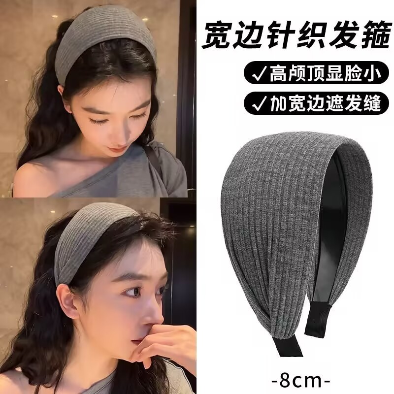 易梦玲同款灰色宽边发箍女2025新款发卡捆高颅顶针织头箍发带发饰