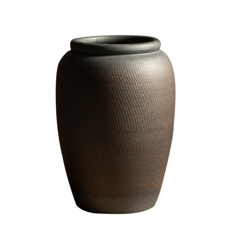 景德镇新中式落地陶瓷大花瓶手工跳刀纹陶罐客厅装饰摆件电视柜