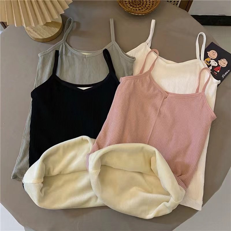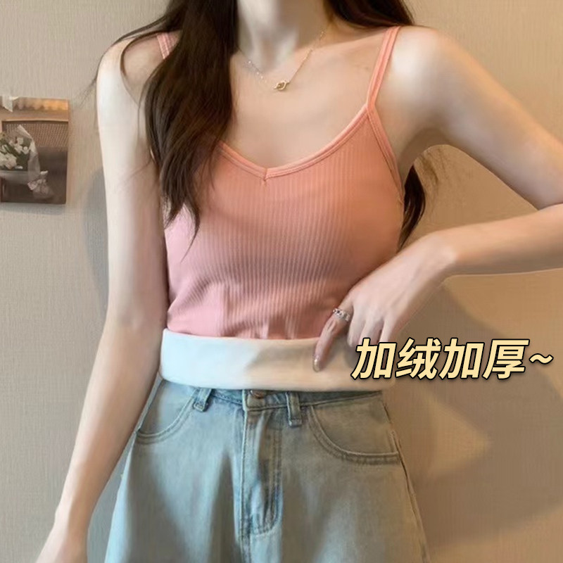 磨毛保暖背心女2025冬新款带胸垫一体无痕吊带打底内衣加绒加厚