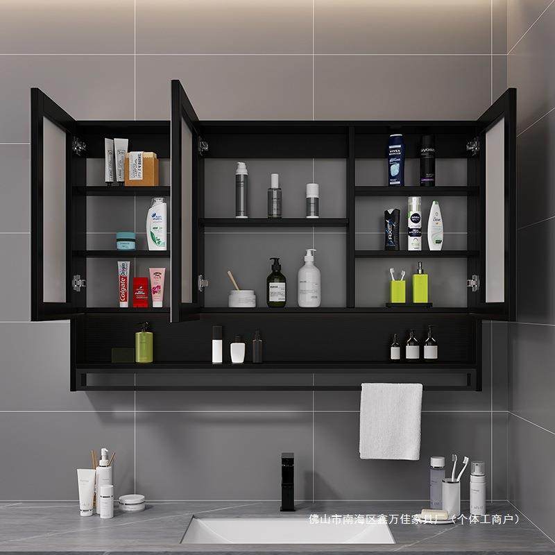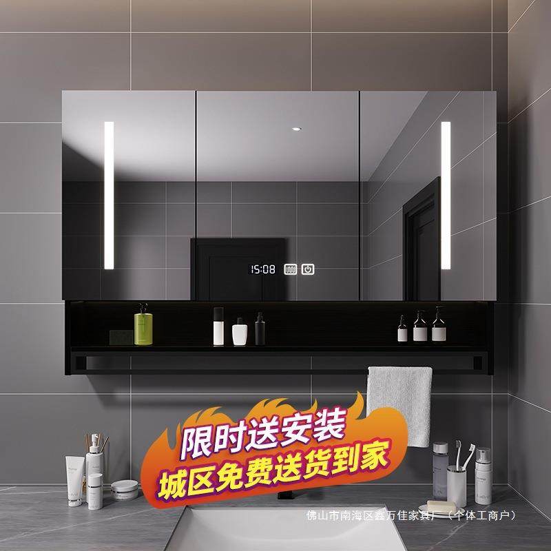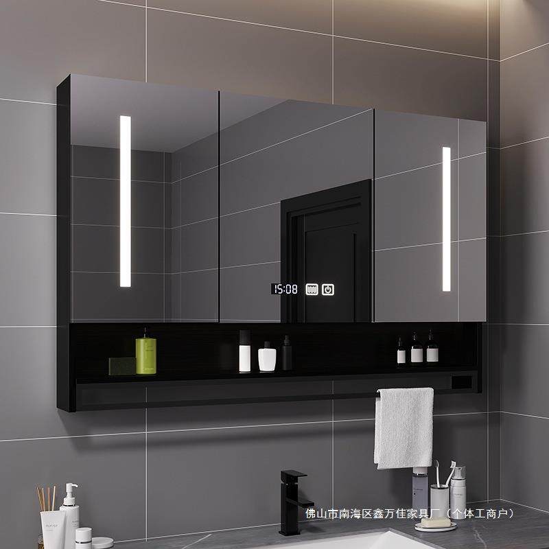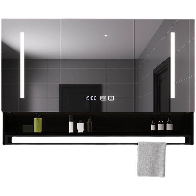 智能浴室镜柜挂墙式带灯除雾单独实木镜柜带毛巾杆卫生间置物镜箱