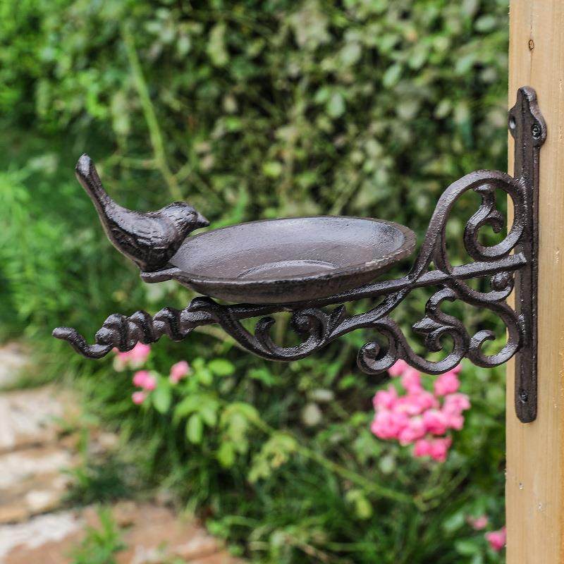 复古铸铁吊钩低头鸟食盆墙挂喂鸟器铁艺壁饰庭院花园院子装饰品
