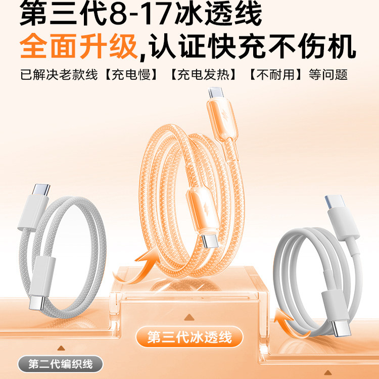 [45W快充]第一卫适用苹果17ProMax充电器线iPhone16数据线15快充14手机双typec冰透30WiPad冲16车载12usb平板