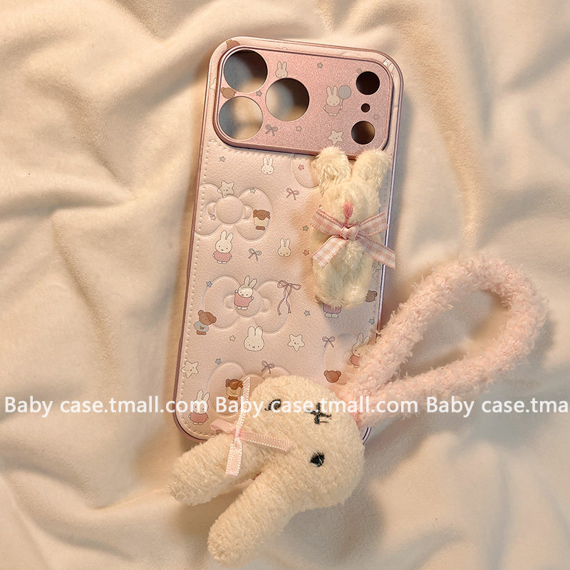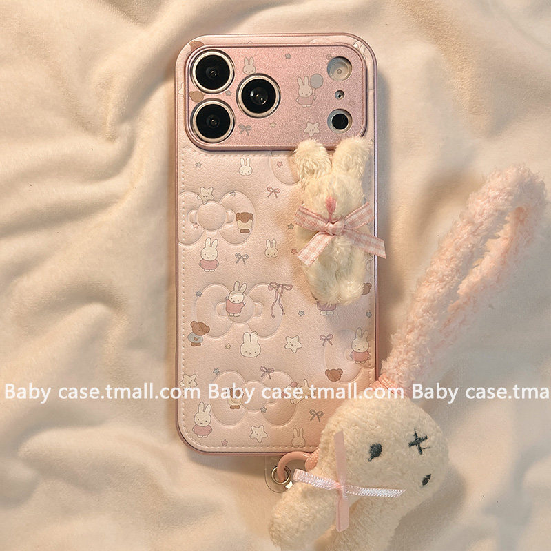 北比ins韩风皮质蝴蝶结米菲兔适用苹果17手机壳iphone16promax新款15毛绒挂绳17pro少女14pm可爱13秋冬16全包