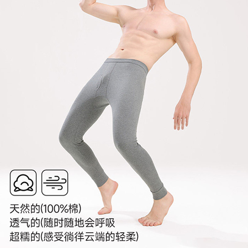 雅鹿男士秋裤纯棉全棉薄款保暖裤男生打底棉裤棉毛裤线裤冬季男款