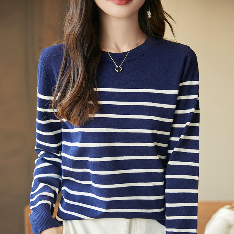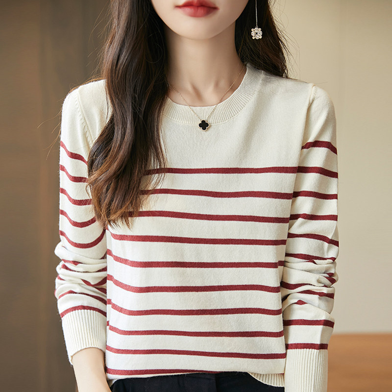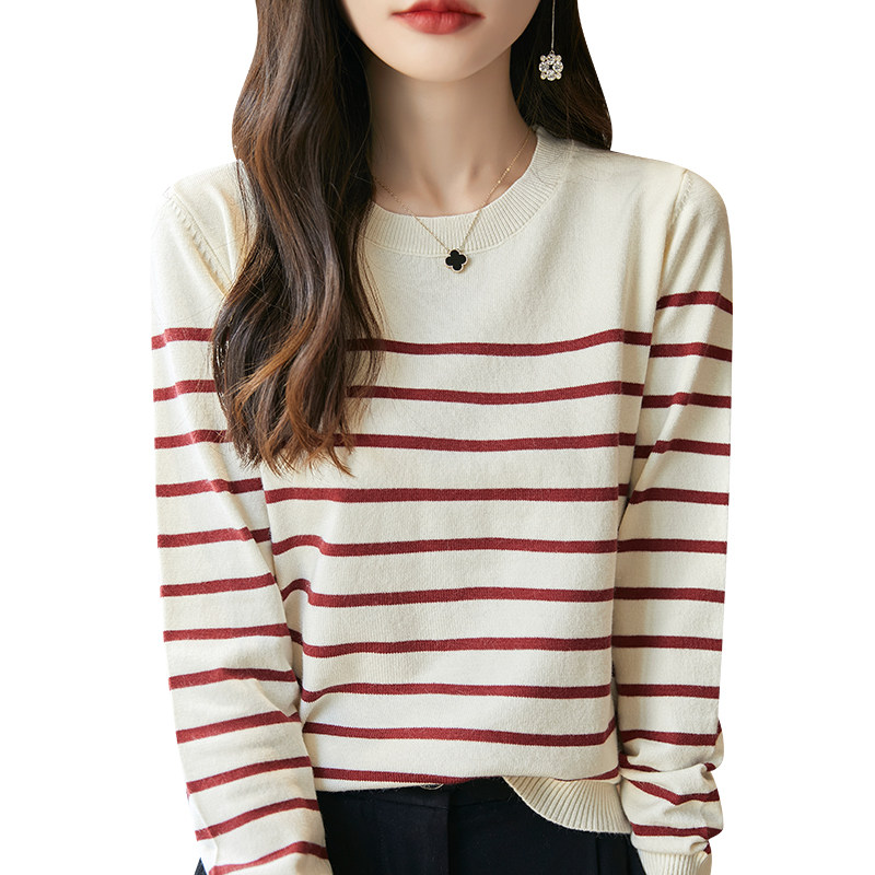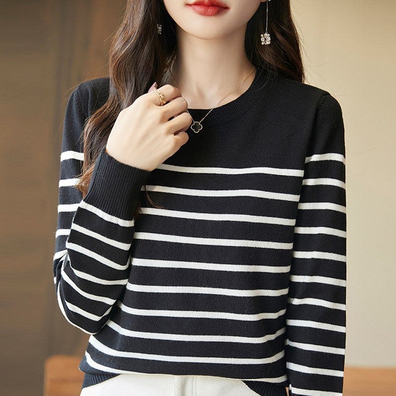 撤标撤柜(A)早秋条纹针织打底衫女春秋流行内搭上衣洋气女装毛衣