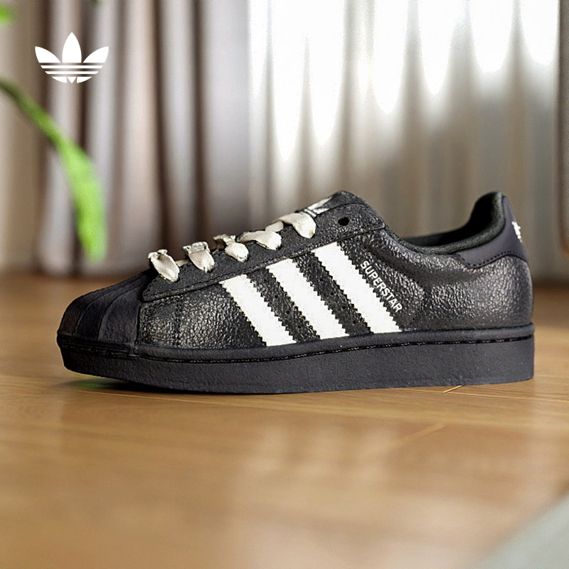 阿迪达斯三叶草贝壳头板鞋2026春女SUPERSTAR黑色休闲鞋 IH1628