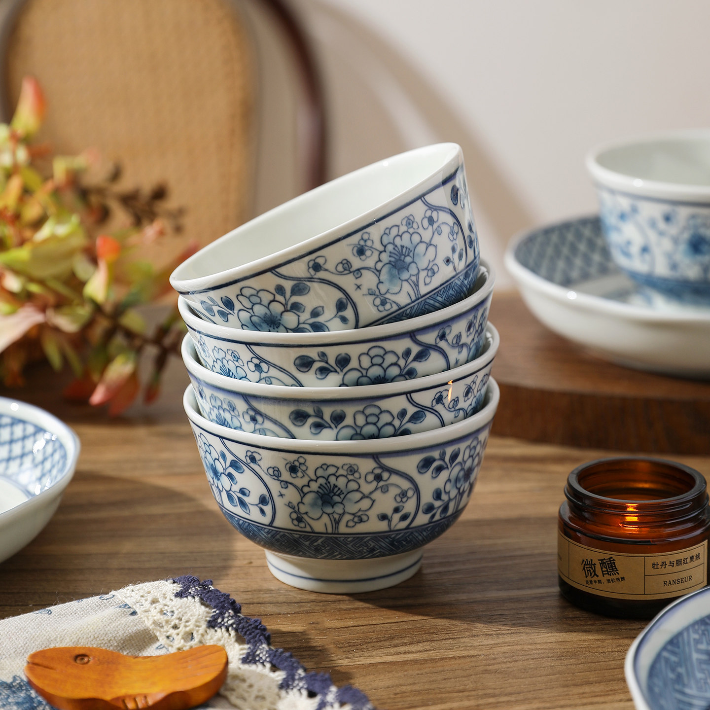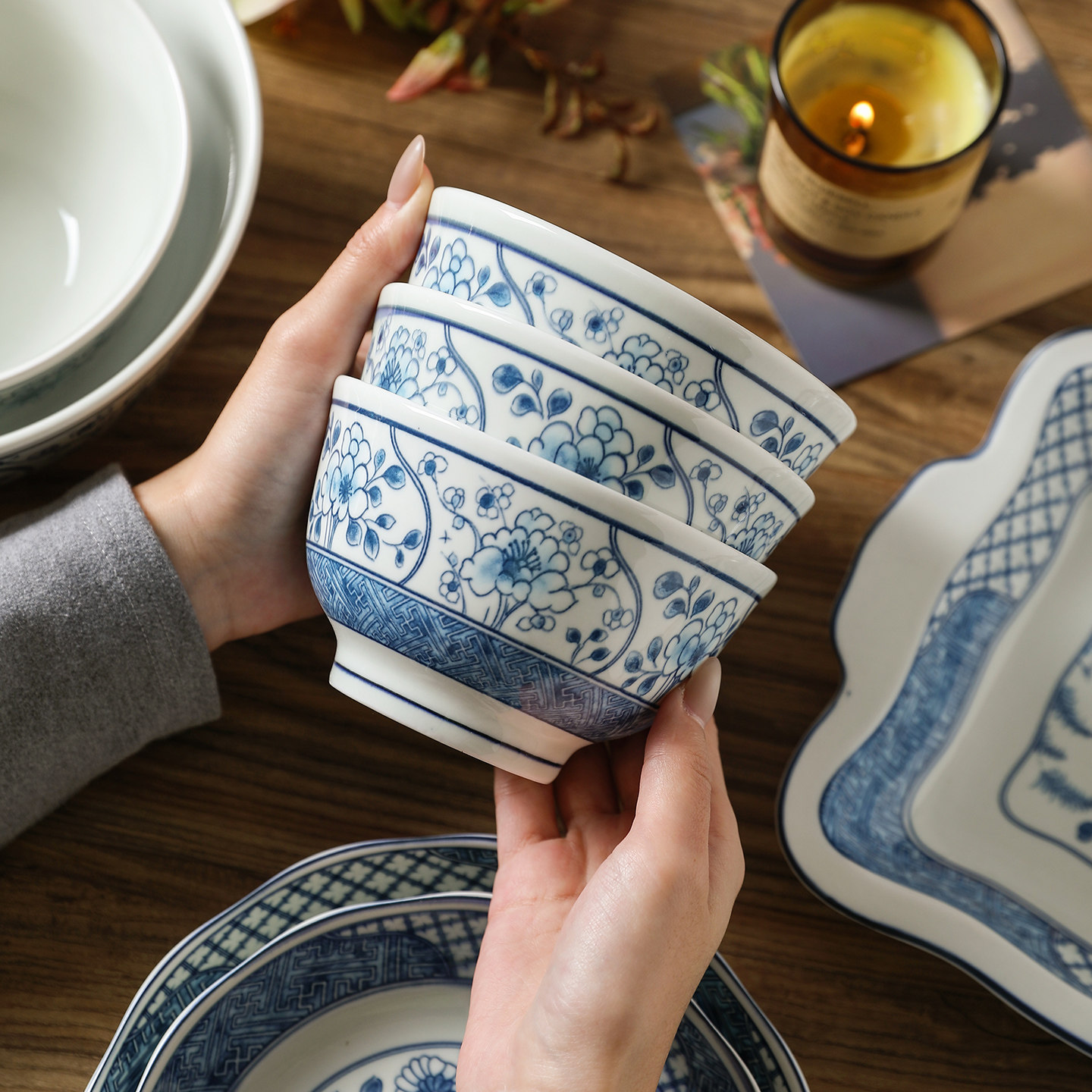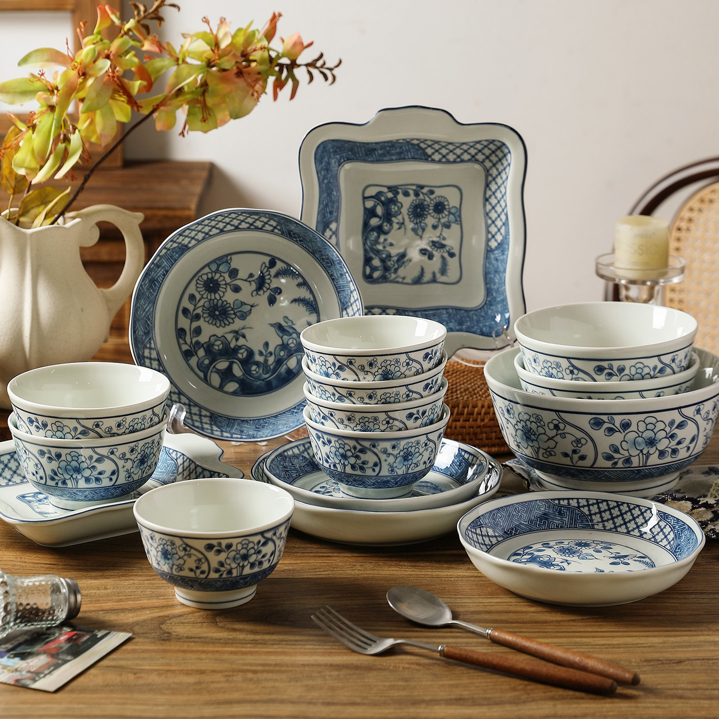 舍里中式釉下彩碗碟套装家用陶瓷吃米饭碗菜盘子餐盘乔迁新居餐具