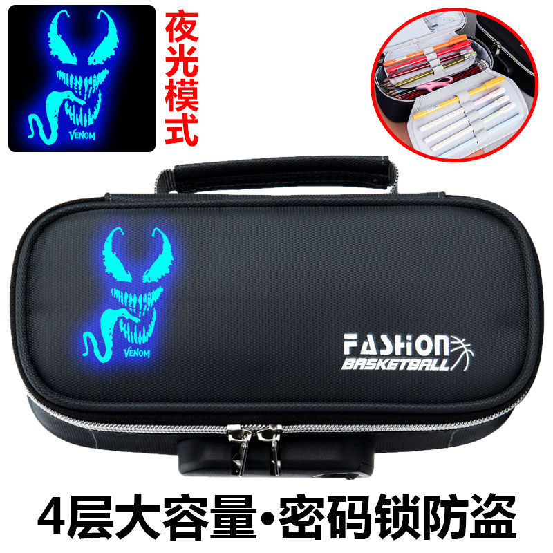 动漫夜光火影笔袋男孩子大容量写轮眼卡卡西佐助密码锁小学生专用