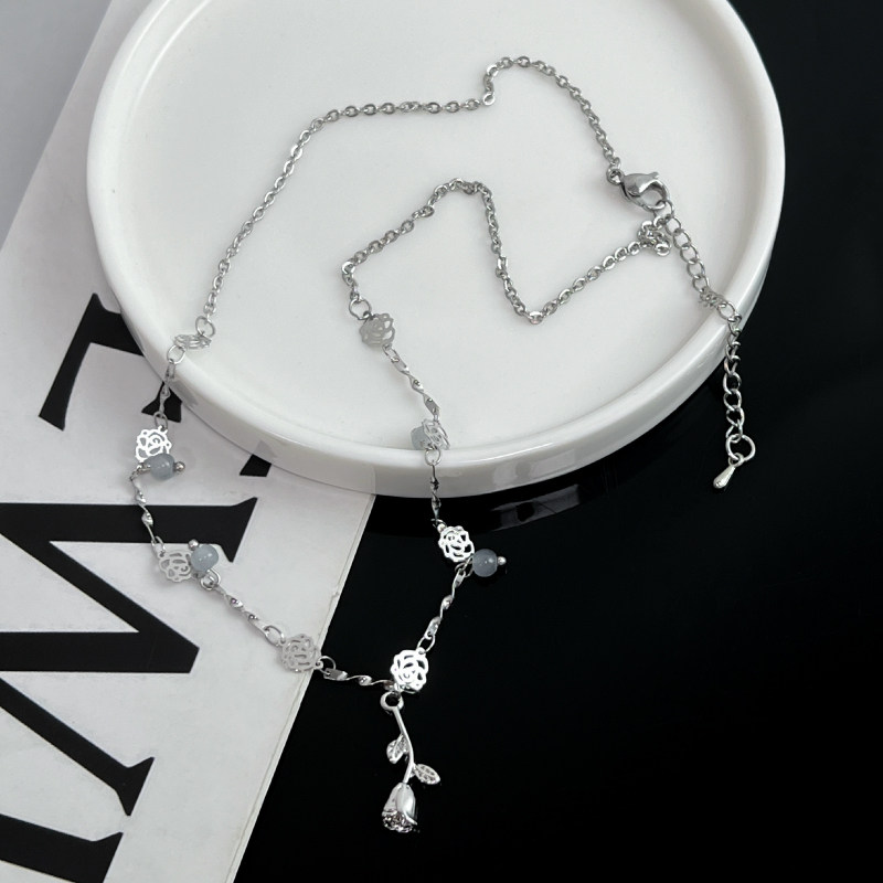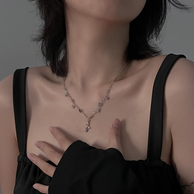 KANSAI新款玫瑰花项链小众设计感高级锁骨链气质复古法式颈链温柔