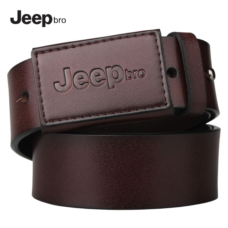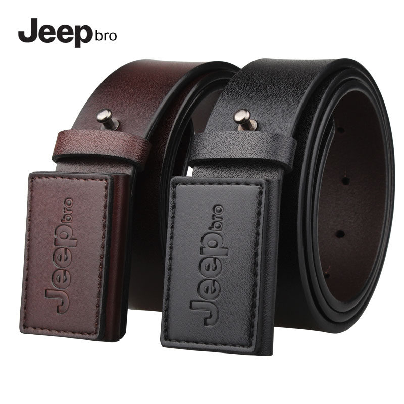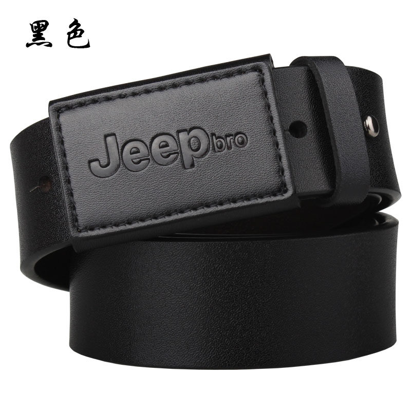 jeep防过敏皮带男真皮大码平滑扣无金属抗过敏腰带加长胖裤带150