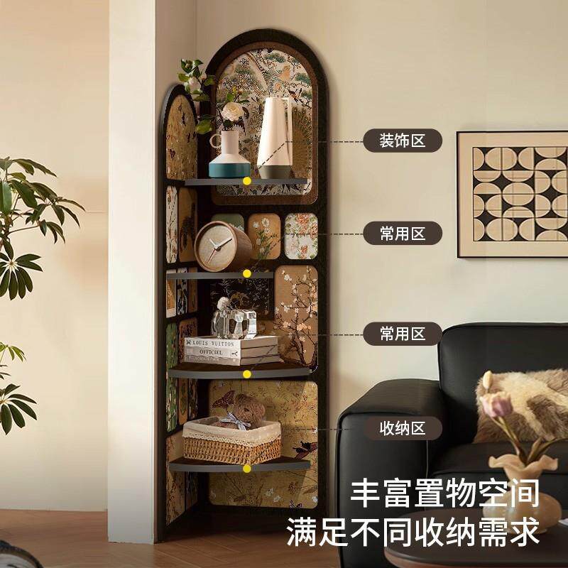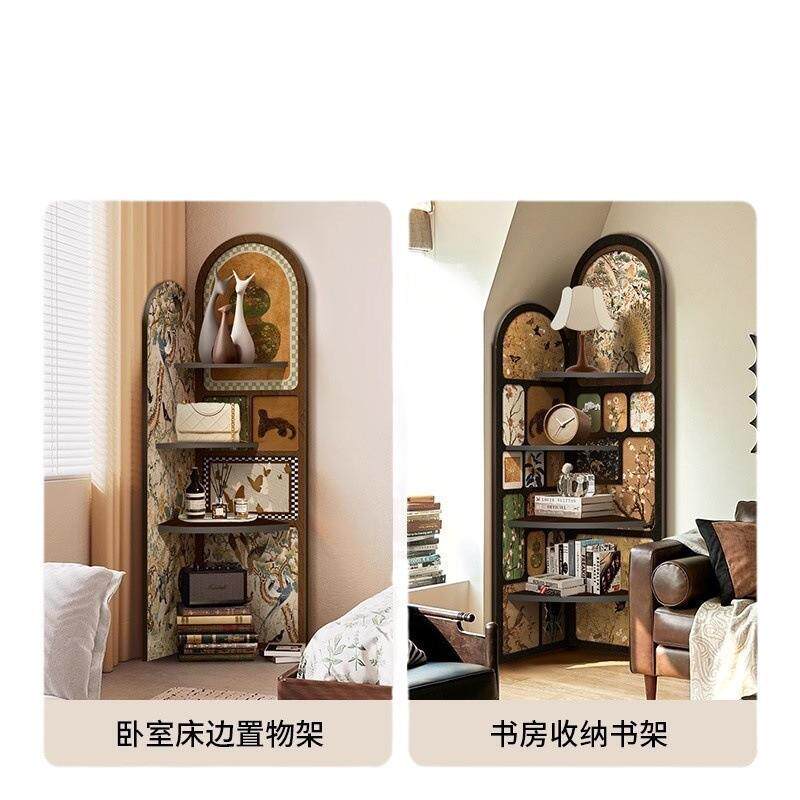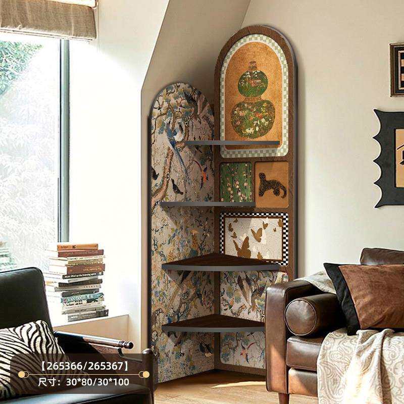 中古风装饰画客厅电视柜旁边转角柜复古置物架多层收纳柜三角柜