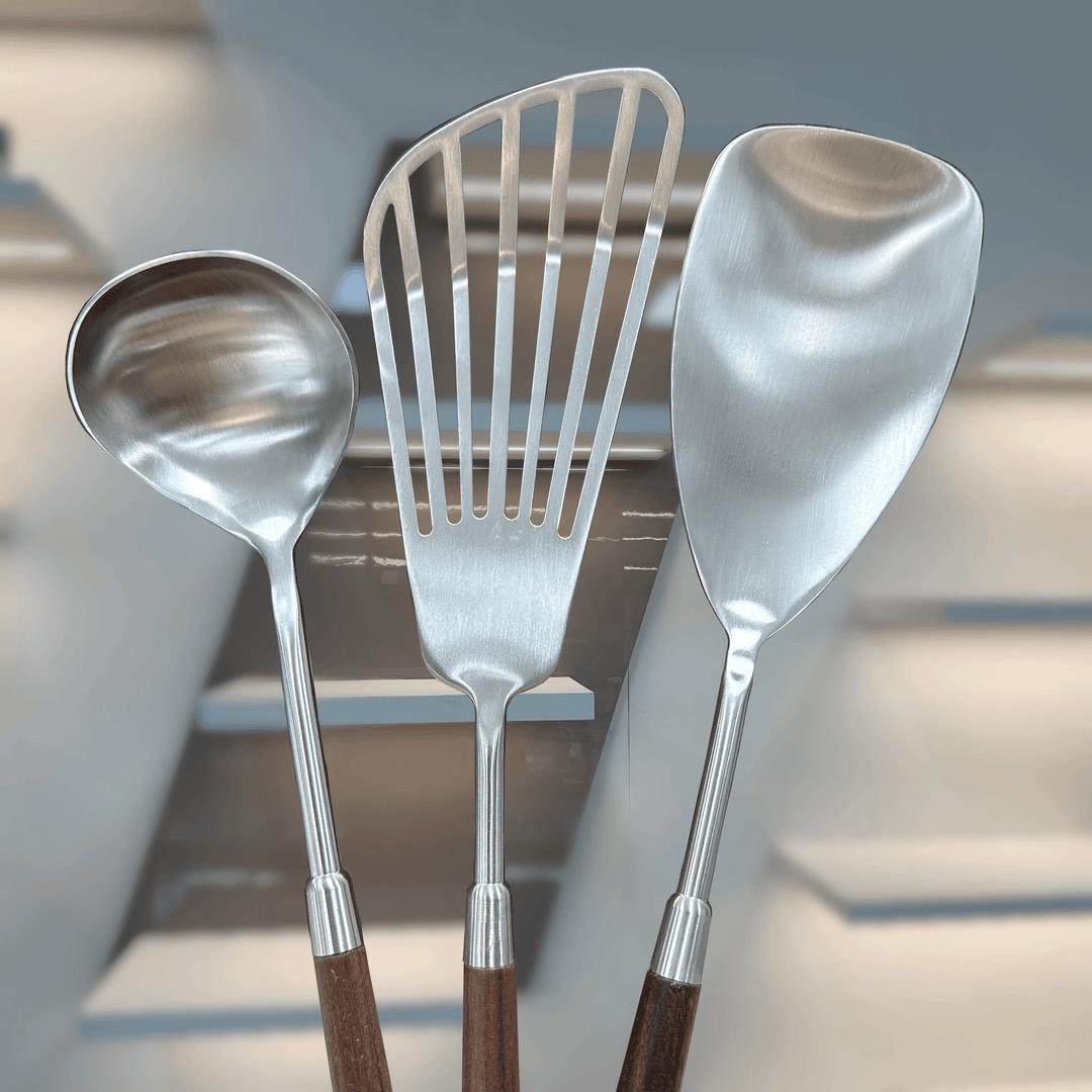 304不锈钢木柄小锅铲 迷你炒菜勺汤勺铲子胡桃木炒菜铲子厨具家用