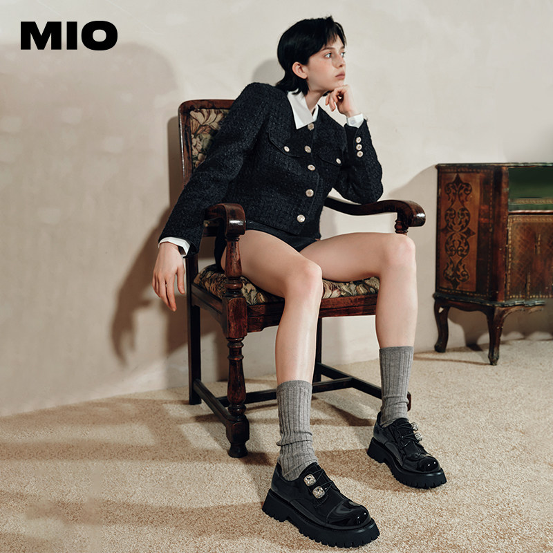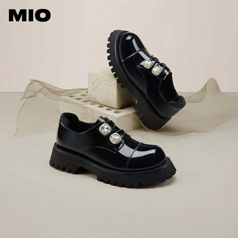 [希林娜依高同款]MIO米奥2025春季小皮鞋松糕鞋水钻单鞋牛津鞋女