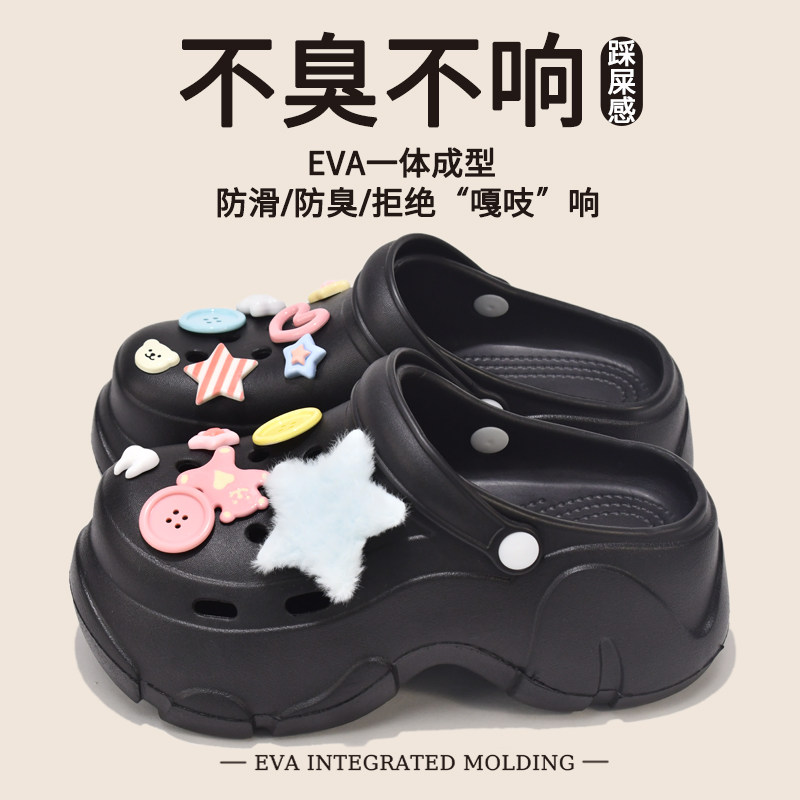 EVA厚底洞洞鞋女夏季外穿2025新款网红时尚松糕增高沙滩包头凉拖