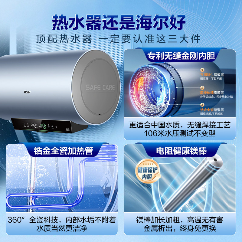 海尔新款电热水器60L一级能效AI变频省电55%
