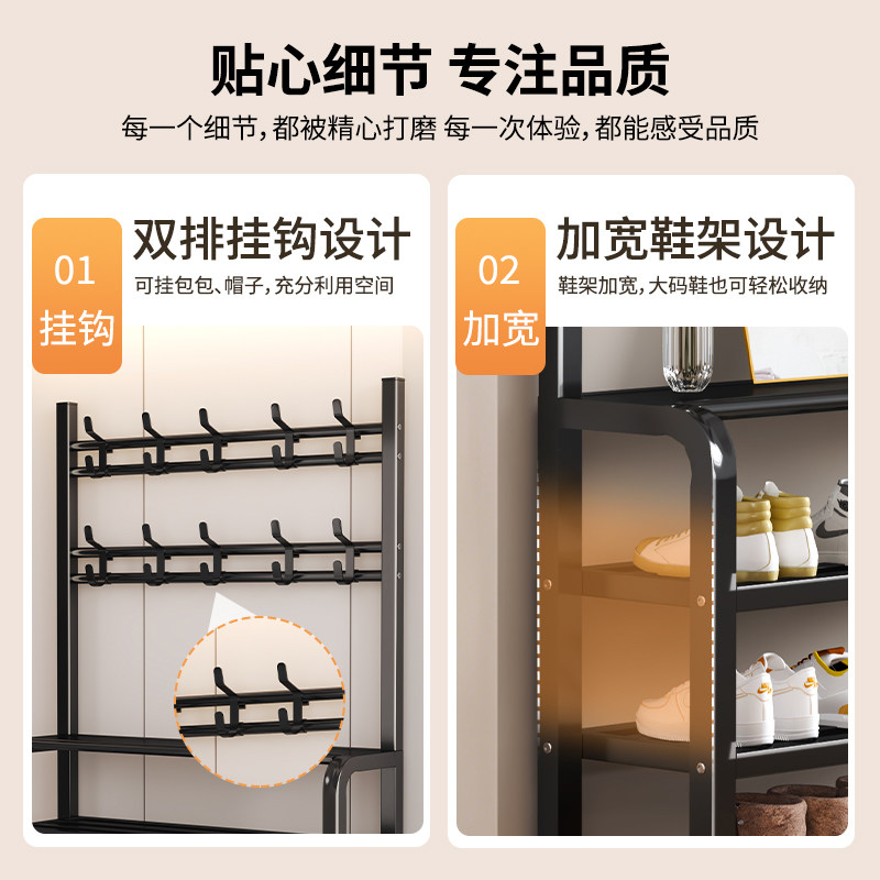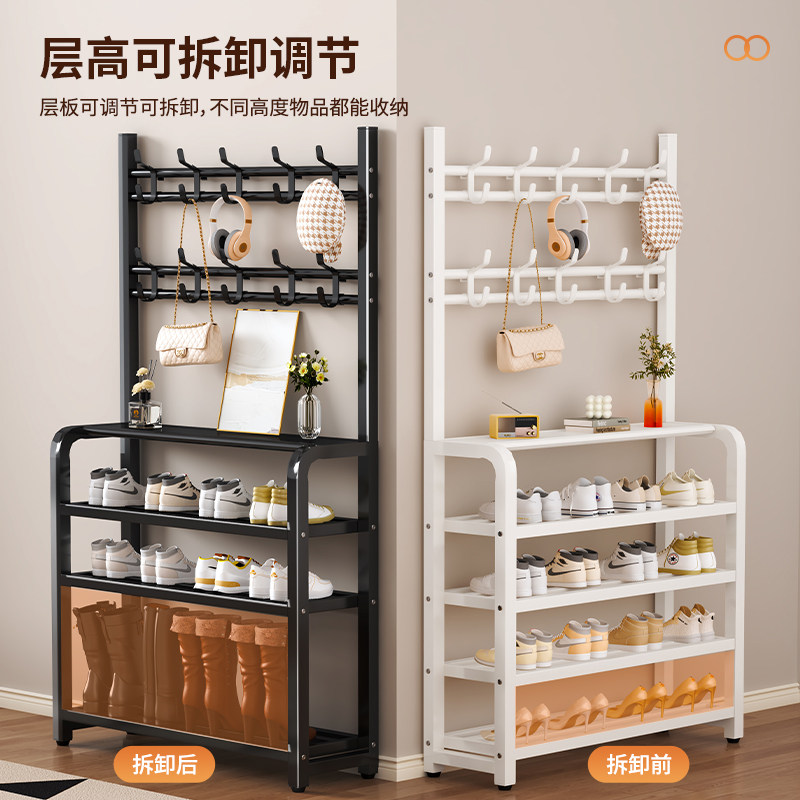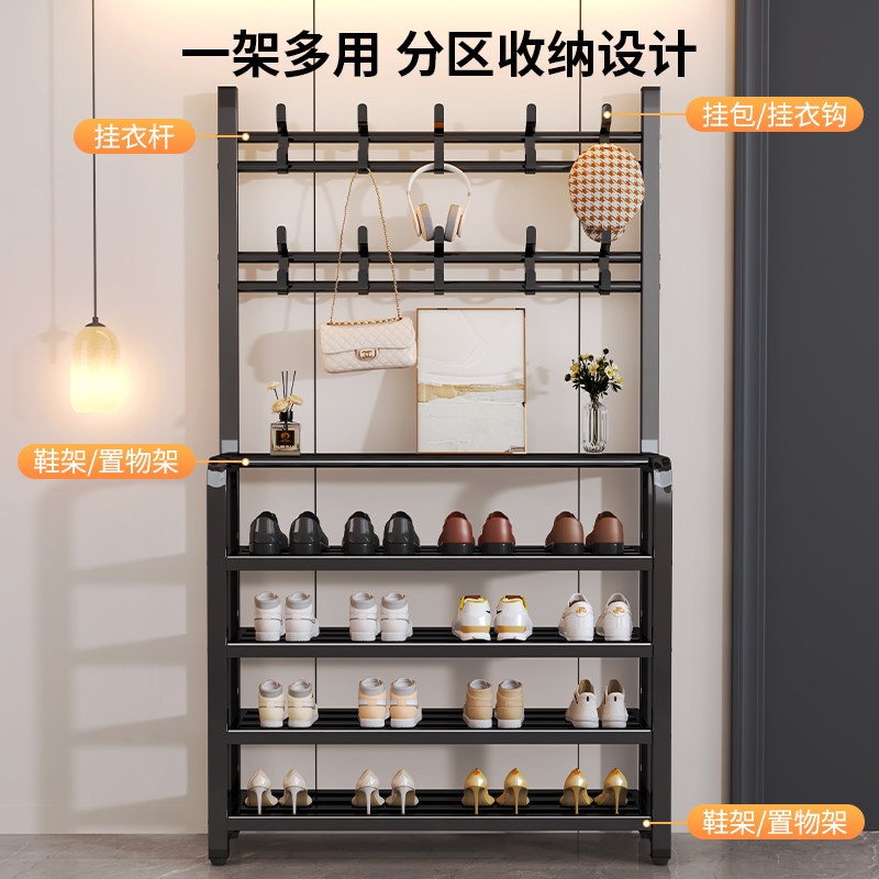 家用衣架鞋架一体简易衣帽架门口多层鞋架多功能收纳出租房用鞋柜