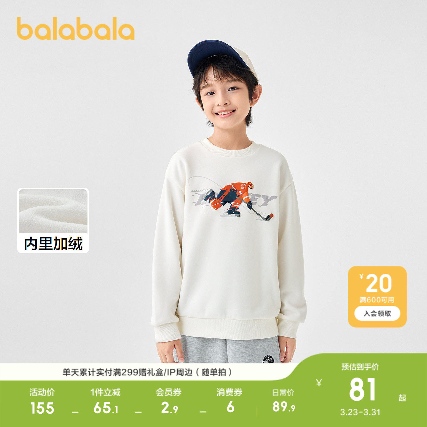 巴拉巴拉童装男童卫衣儿童秋冬中大童上衣加绒保暖休闲时尚百搭潮