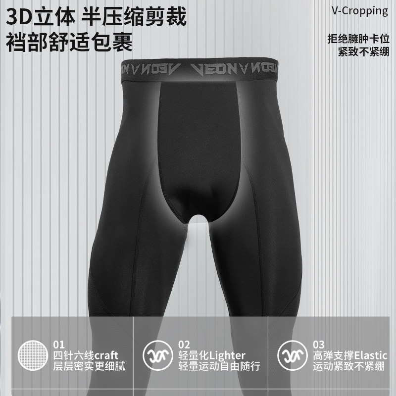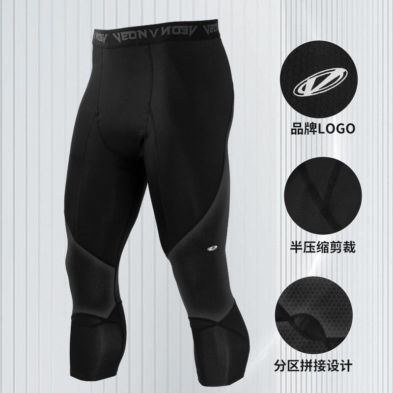 维动篮球紧身裤男士速干运动健身裤跑步训练高弹力七分压缩裤九分