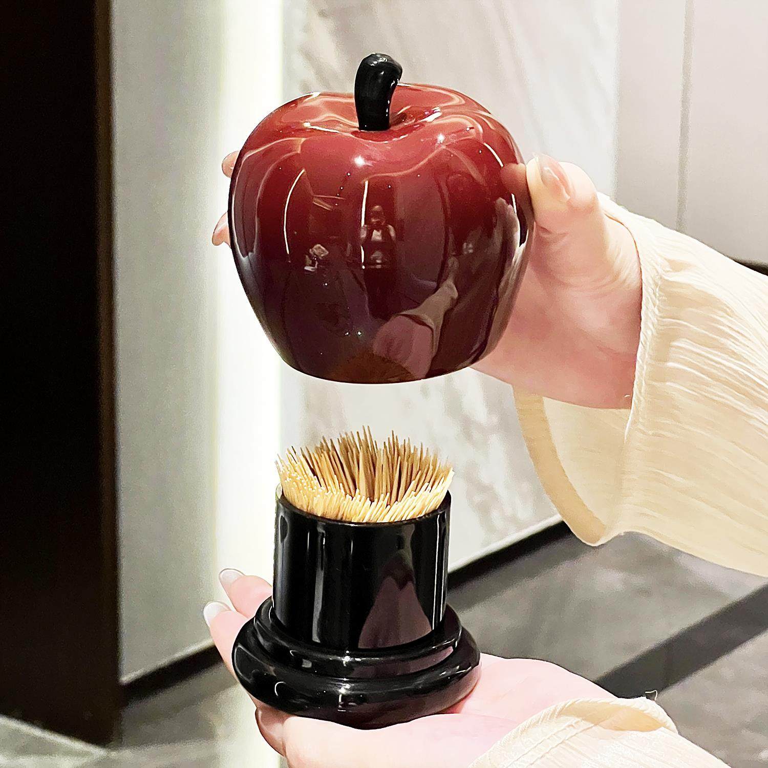 创意塑料苹果鸭梨牙签罐棉签收纳筒牙线收纳储物盒小摆件高颜值