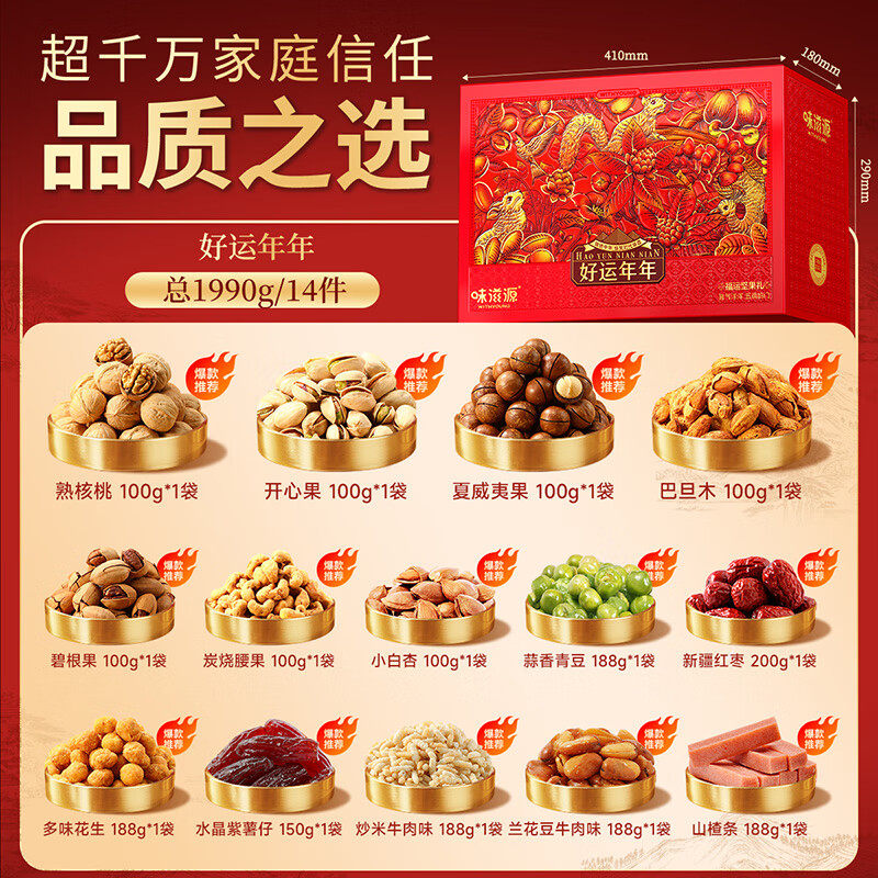 味滋源坚果高端年货礼盒节日送礼好运年年福运坚果礼盒【 1990g】