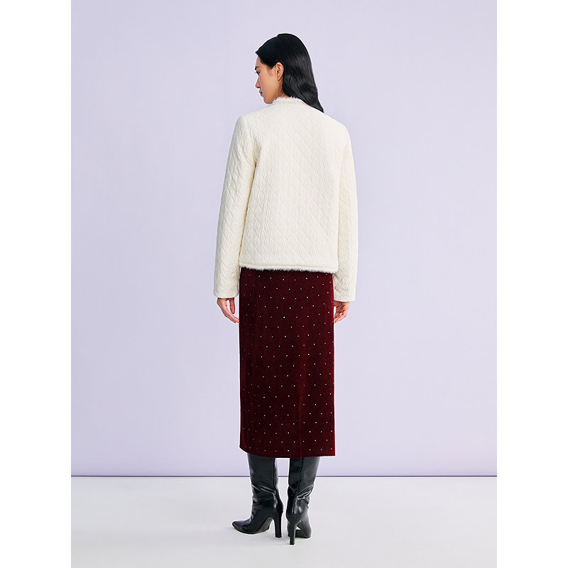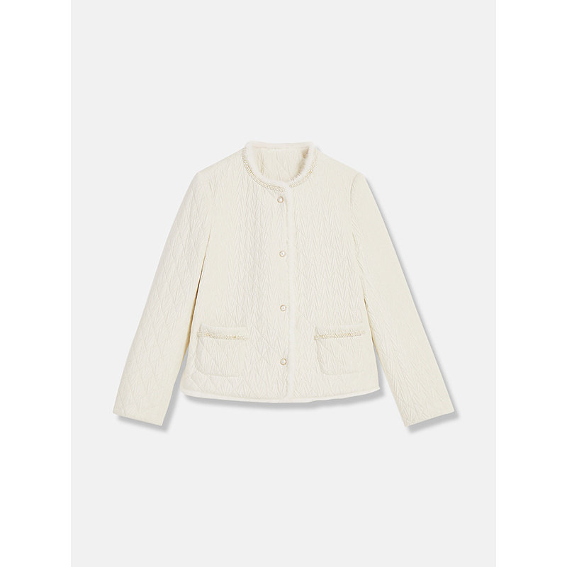 YINER音儿专选2026春季新款小香风轻薄短款菱格纹水貂毛边羽绒服