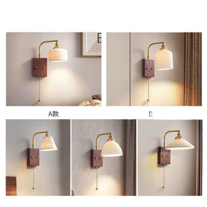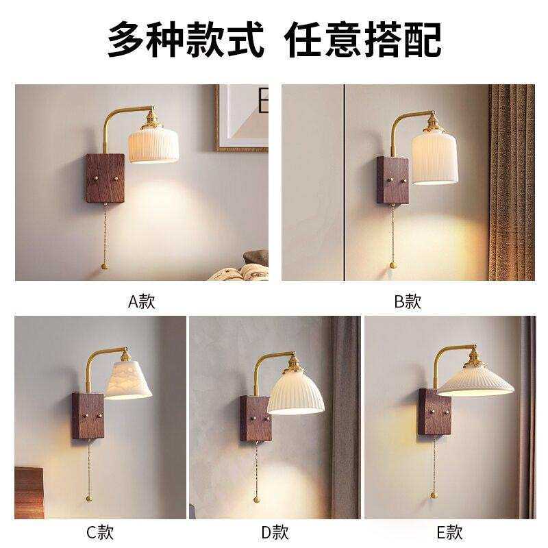 全铜北欧日式设计师拉链民宿客厅书房灯可移位陶瓷卧室床头壁灯