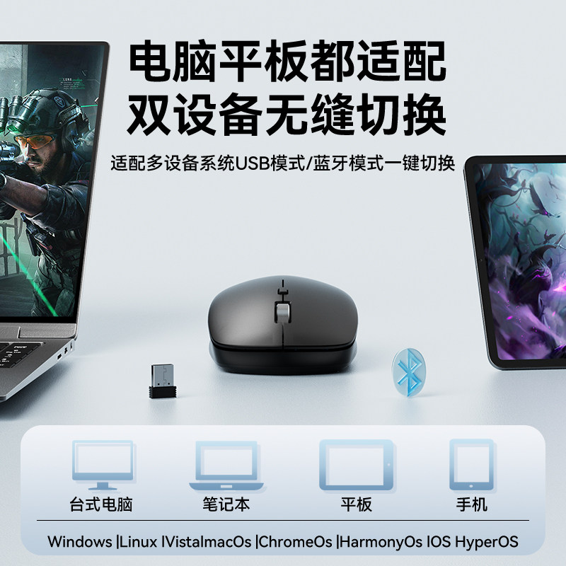 蓝牙无线鼠标静音无声可充电款游戏电竞男女生台式笔记本电脑通用