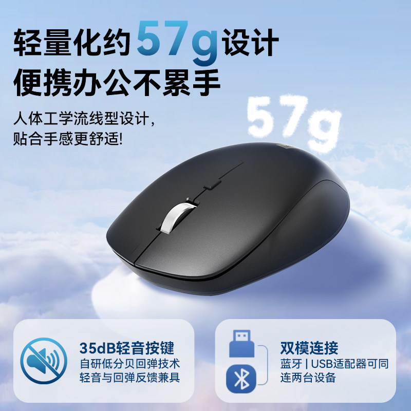 联想小新蓝牙无线静音轻音充电双模鼠标 办公学习笔记本电脑鼠标
