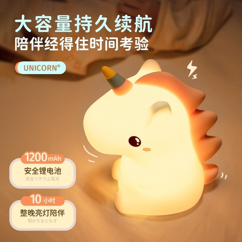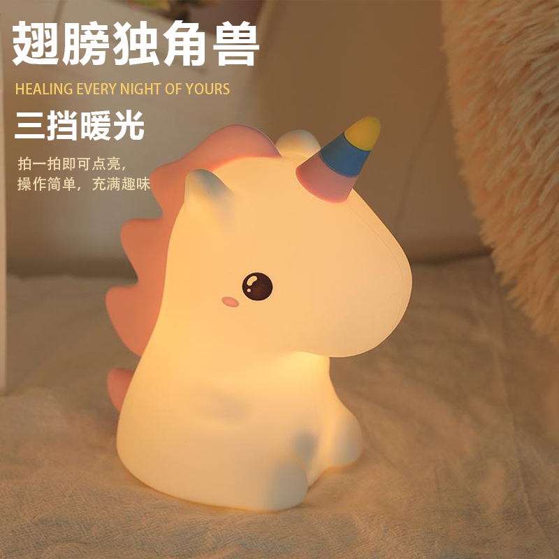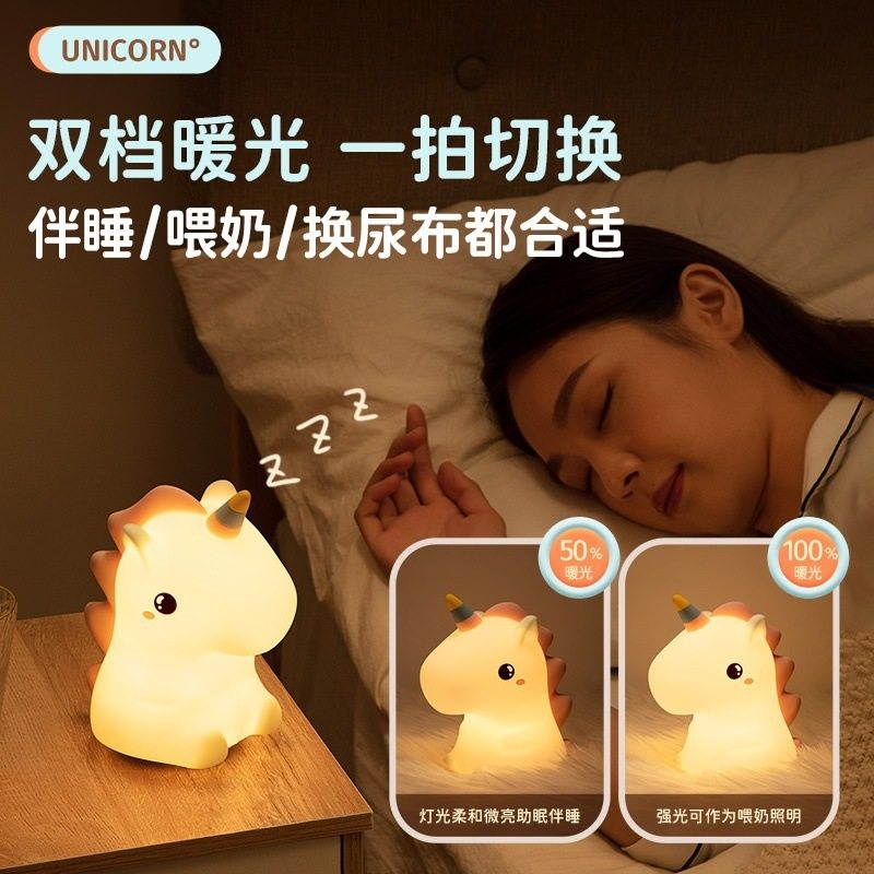 独角兽卡通可爱柔光拍拍灯婴儿伴睡高颜值卧室摆件台灯硅胶小夜灯