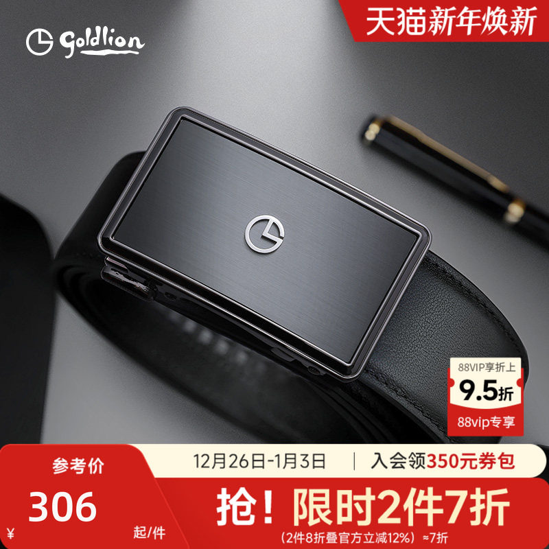 【内穿式】金利来皮具男士新款自动扣头层牛皮商务3D浮雕皮带腰带