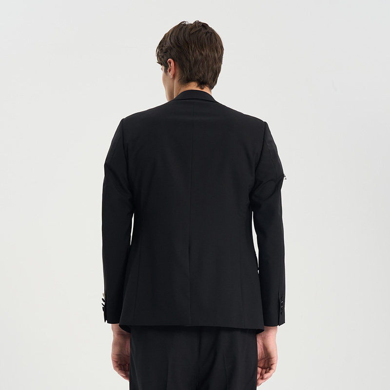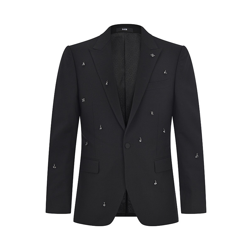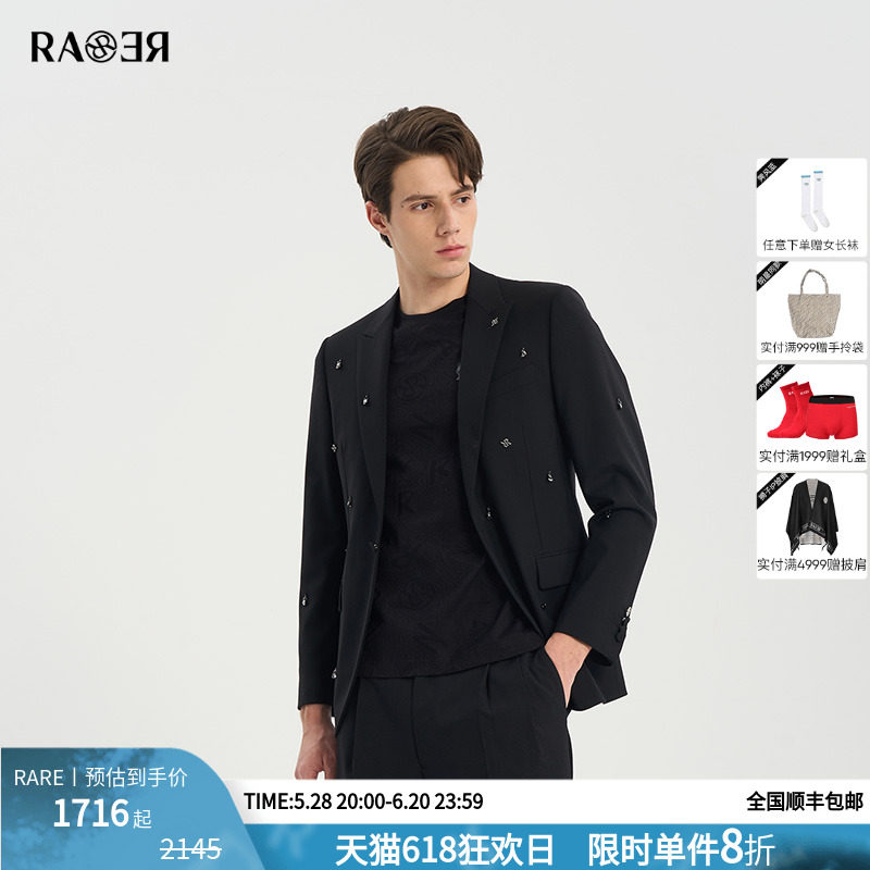 RARE威雅男装春夏新款黑色羊毛混纺西装套装悬挂水钻西服外套