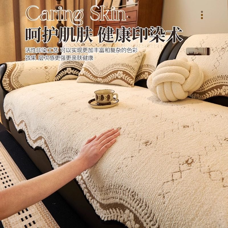 雪尼尔沙发垫四季通用可拆洗防滑防猫抓简约现代三座一贵妃沙发套