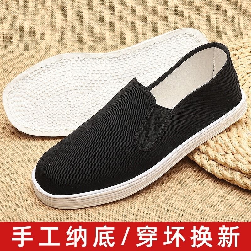 老北京布鞋男士千层底布鞋一脚蹬春季男鞋透气布鞋黑单鞋字老布鞋