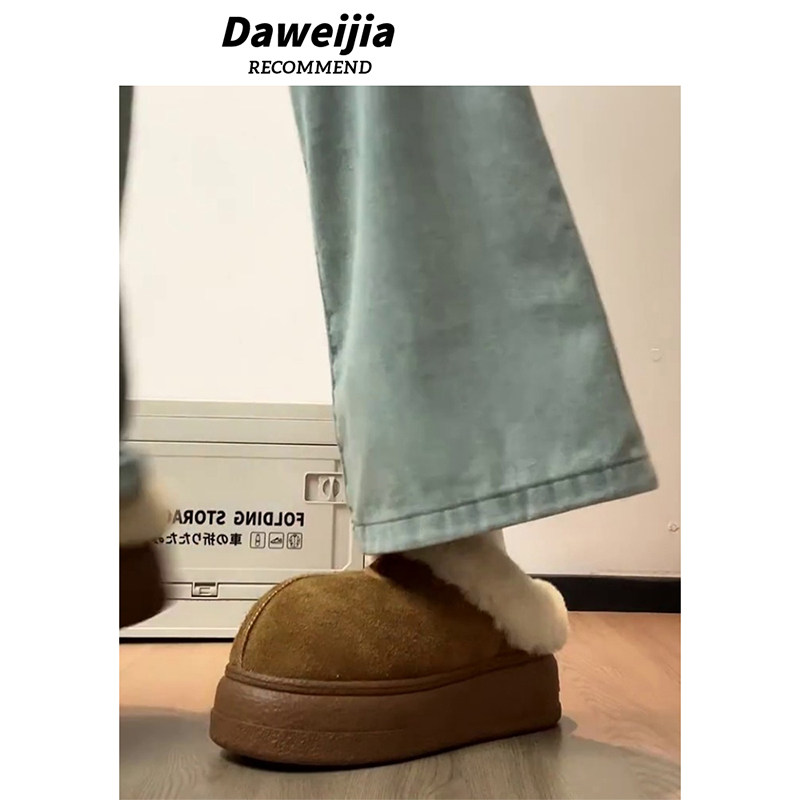 周雨彤同款厚底勃肯鞋女2025新款冬季加绒半拖鞋外穿增高穆勒鞋子