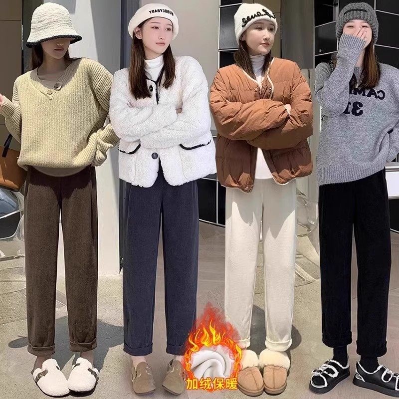 加绒孕妇哈伦裤秋冬季2025新款萝卜裤小个子不勒肚子怀孕期托腹裤