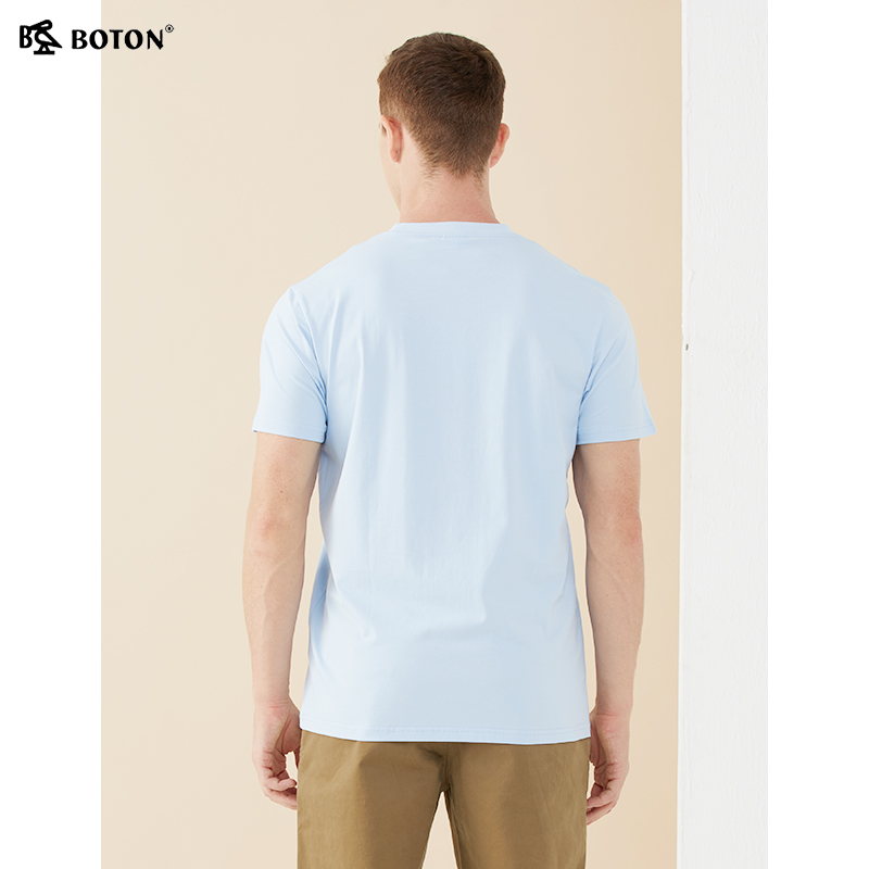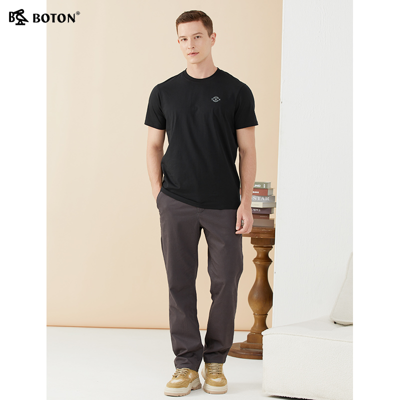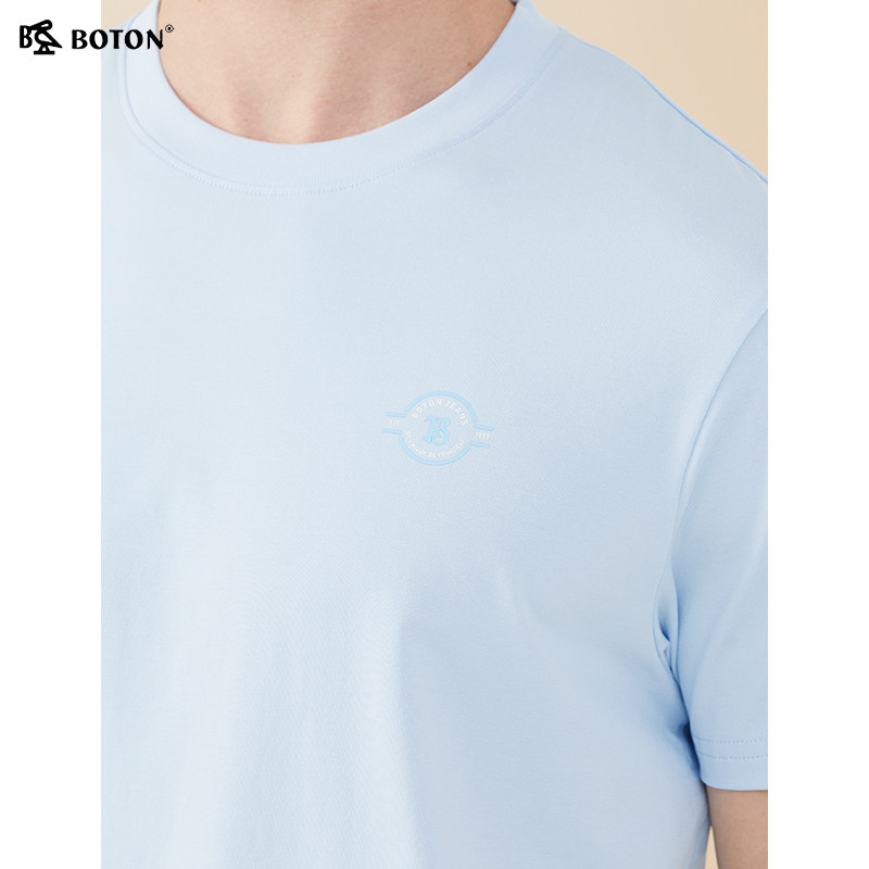 [长绒棉]波顿夏季短袖冰感美式休闲t恤男士纯色棉高端圆领体恤衫