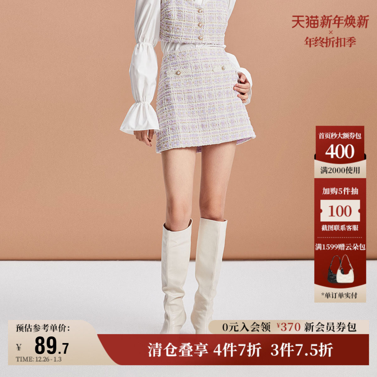 Vero Moda奥莱半身裙秋冬清仓优雅甜美小香风A摆肌理感短裙百搭