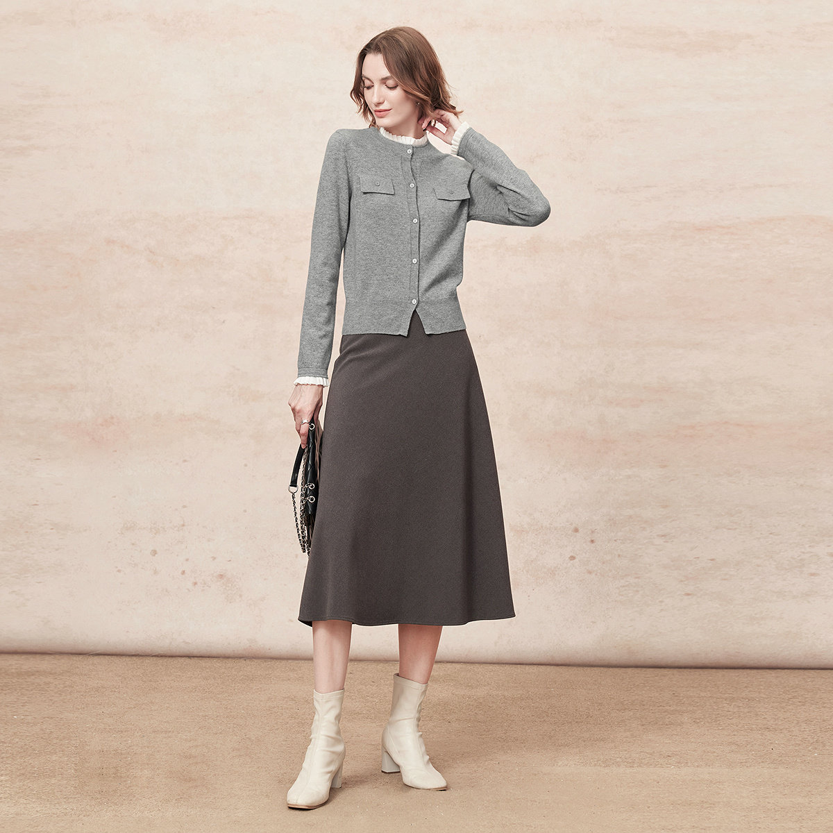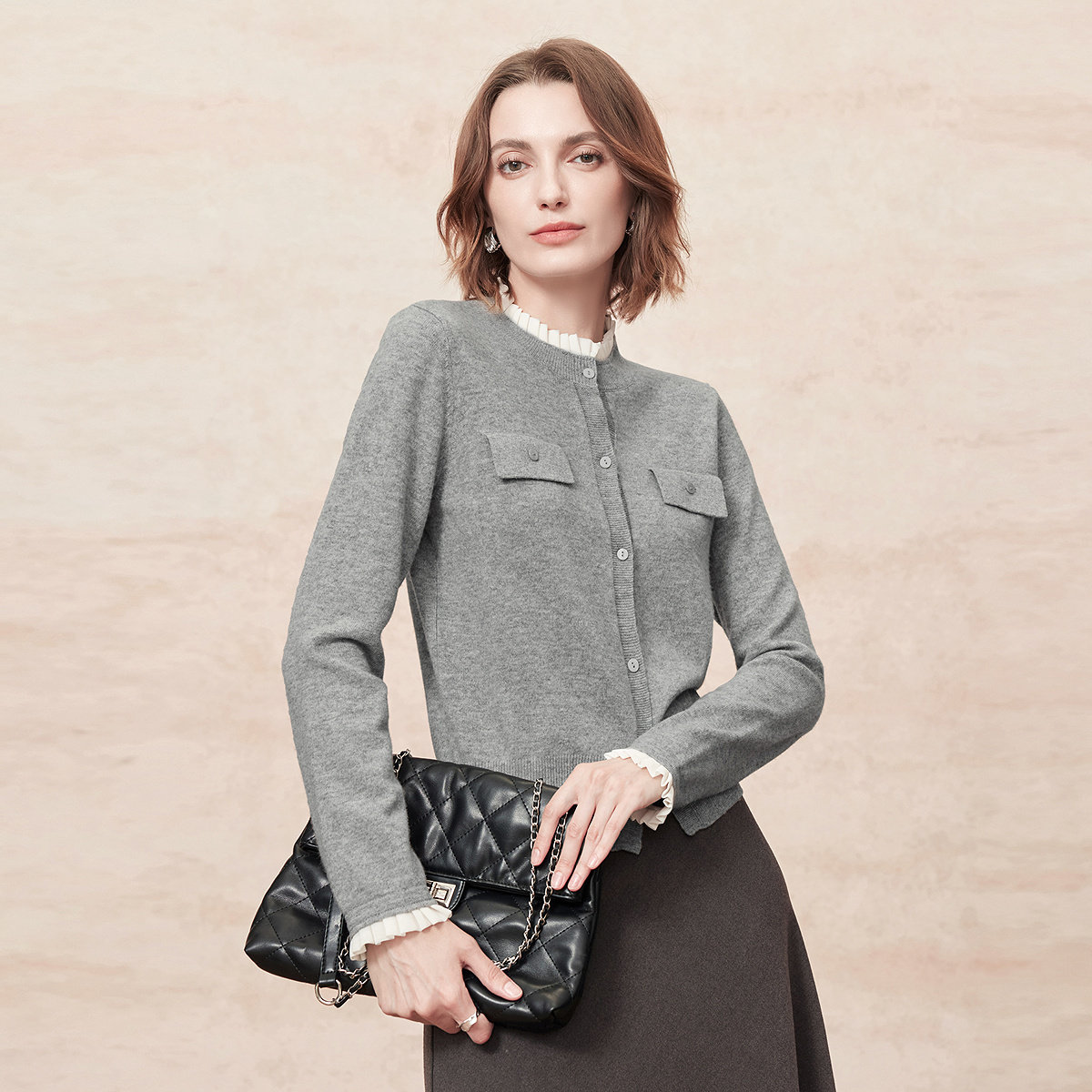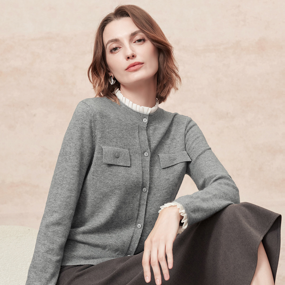 鄂尔多斯市断码羊绒开衫女春秋新款宽松毛衣外套翻领针织羊毛衫