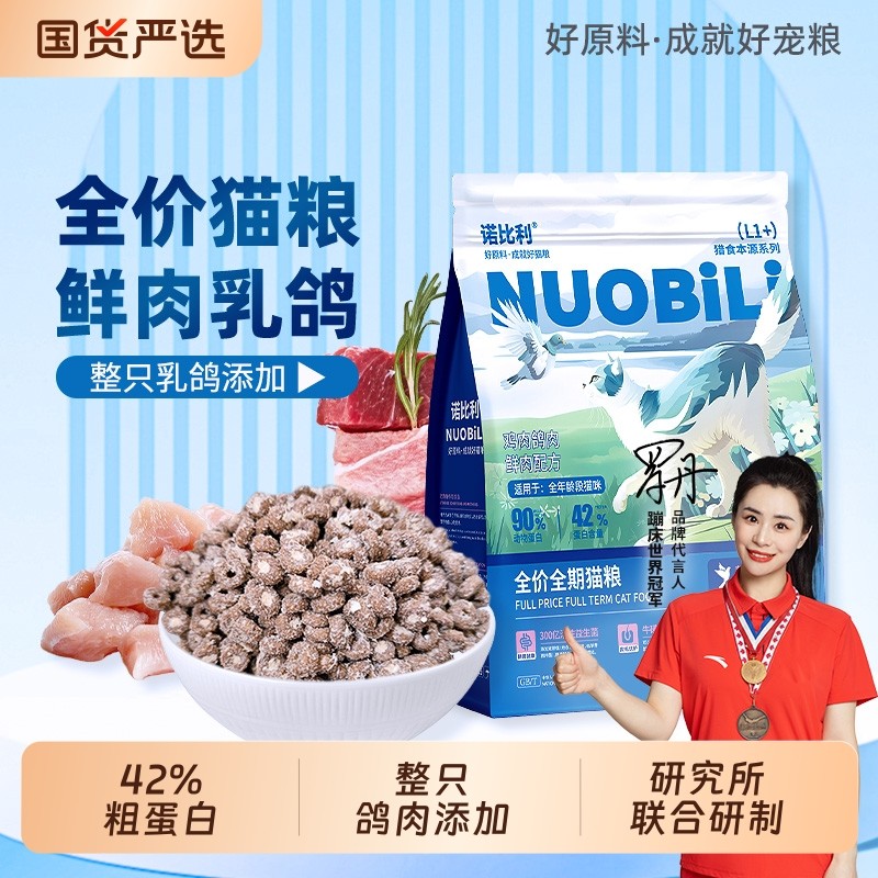 诺比利鲜肉无谷乳鸽猫粮增肥发腮夹心成幼猫通用10斤全价正品猫粮