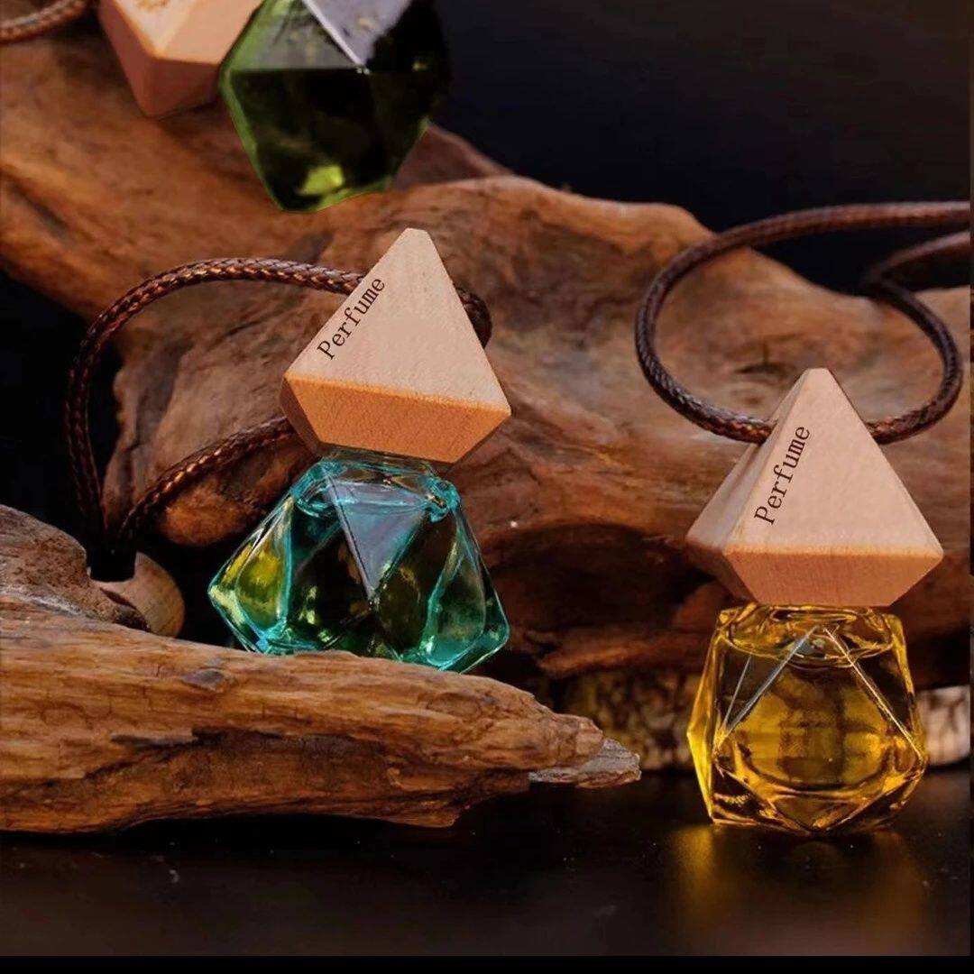 车载香水香薰吊坠汽车挂饰持久淡香精油车内挂件悬挂式玻璃瓶木盖