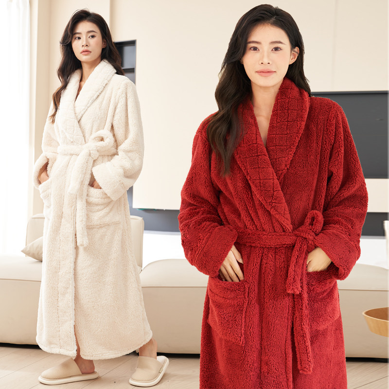 【三层加厚】冬保暖睡衣家居服套装中长款睡袍毛绒浴袍加厚情侣款
