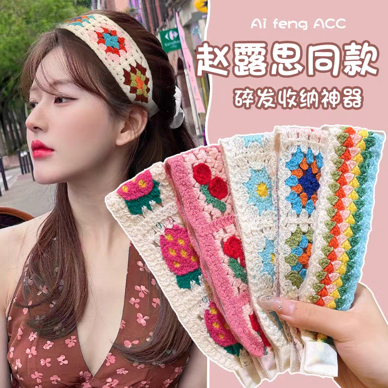 碎花针织刘海贴碎发魔术贴头发贴发带女不压发箍洗脸头箍头饰神器