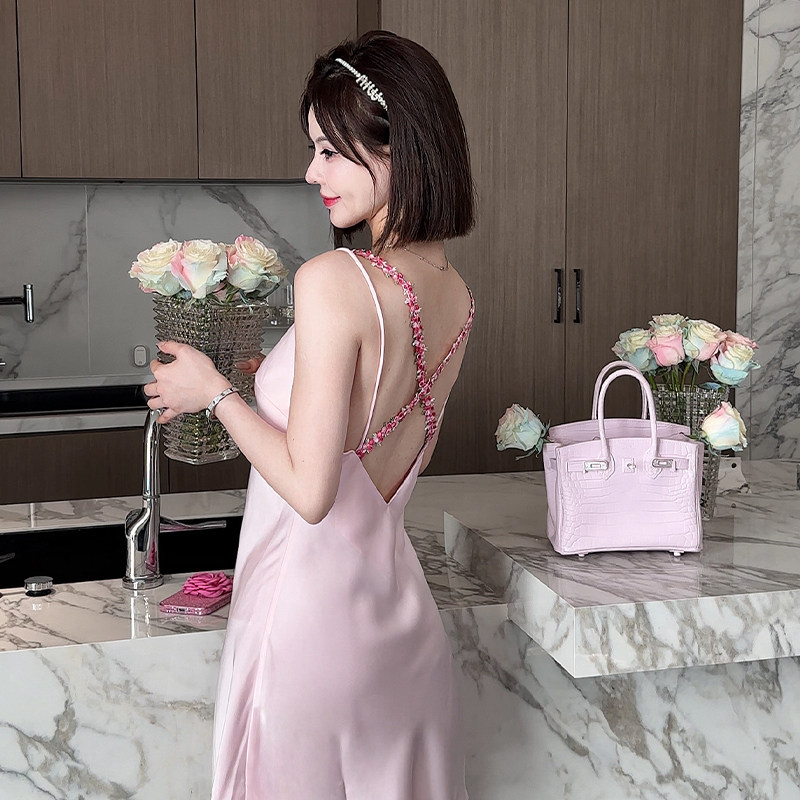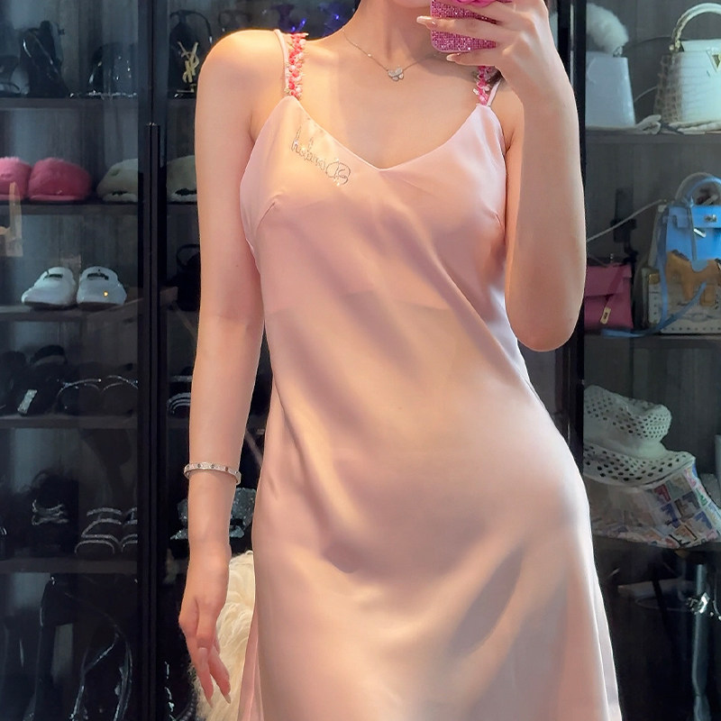 金三塔凉感真丝吊带裙100%桑蚕丝纯欲风睡衣真丝性感睡裙家居服女