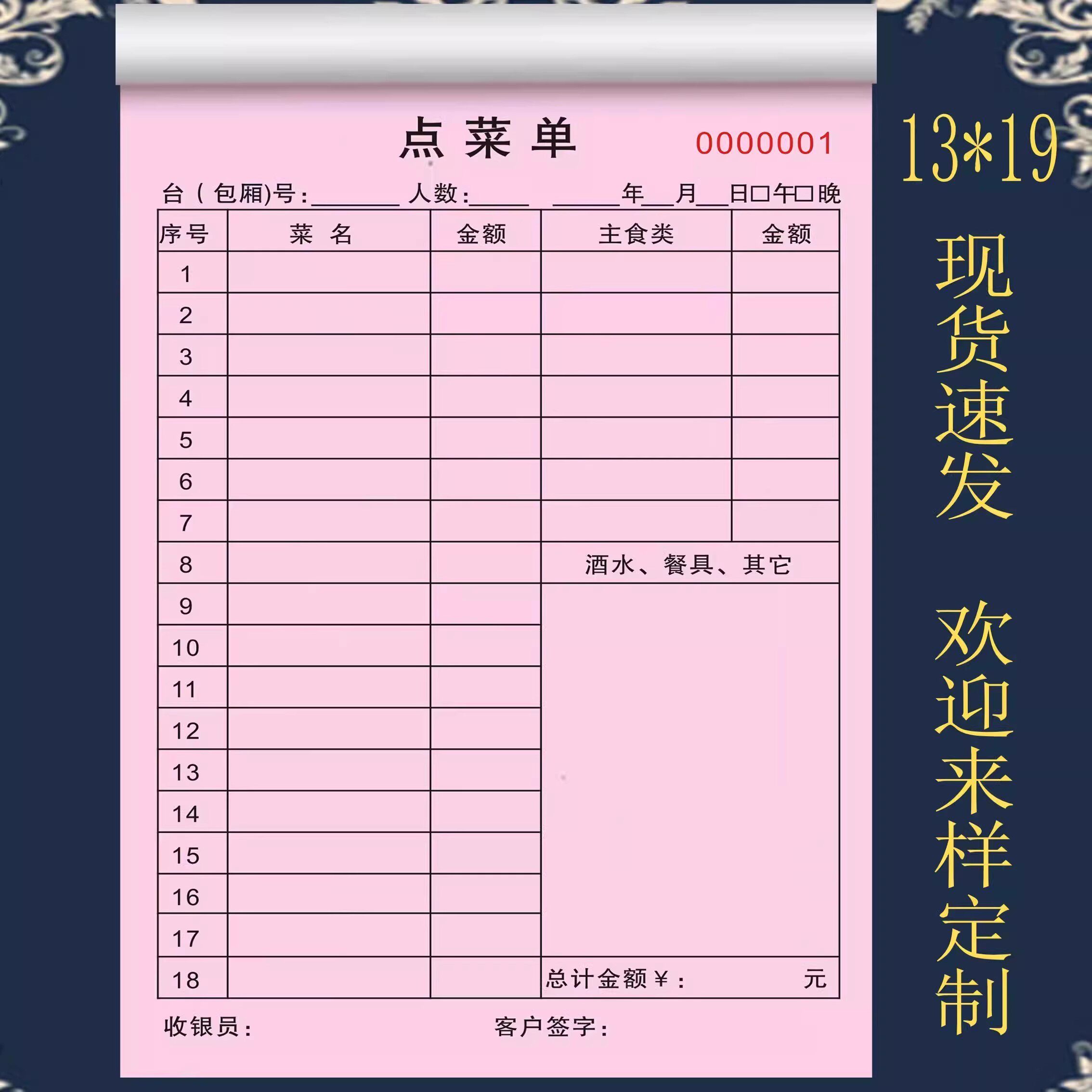 点菜单一联二联定制饭店餐饮烧烤点菜单本酒水单消费单茶水单包邮