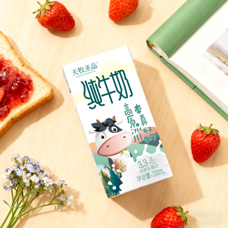 天牧圣品纯牛奶100%生牛乳04箱200ml*10盒早餐奶常温饮用原生全脂