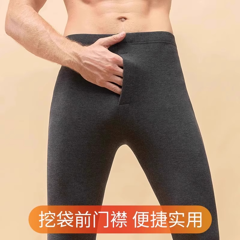 男士秋裤德绒保暖裤秋冬加绒加厚羊毛蚕丝打底裤绒裤羊绒灰色柔软