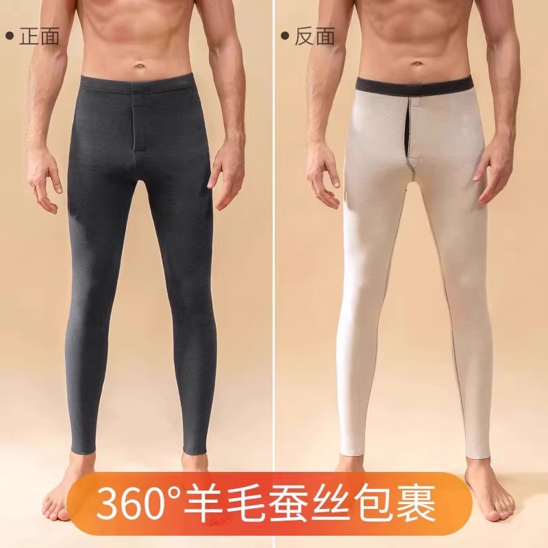 羊毛蚕丝男士秋裤发热加厚加绒德保暖裤无痕薄款衬裤打底线裤冬季