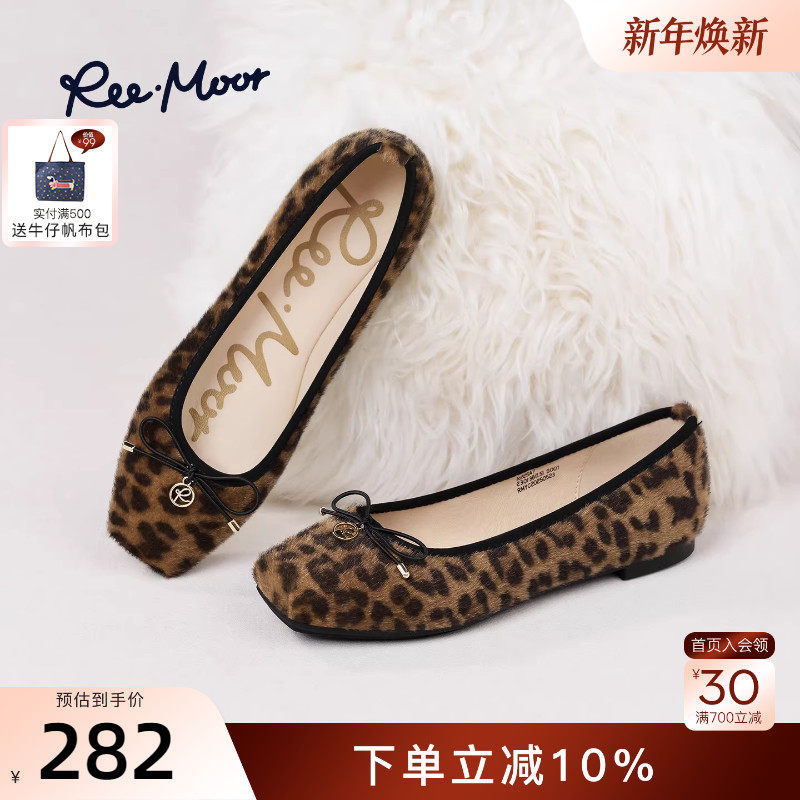 REEMOOR睿慕2025秋季新款豹纹玛丽珍鞋平底浅口一字带单鞋女鞋